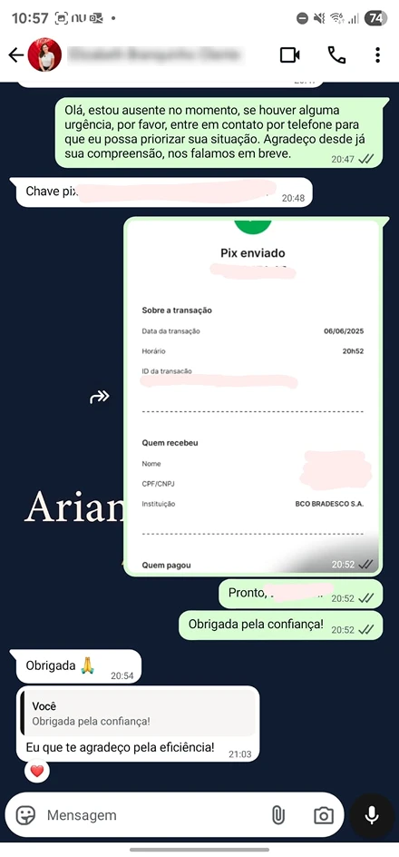 Olá, sou Arianne Sampaio Ferreira Chahin, advogada atuante no Paraná desde 2019, com uma sólida trajetória na área cível. Desde o início da minha graduação em Direito, em 2014, dediquei-me intensamente à advocacia, o que me proporcionou não apenas uma profunda compreensão do campo jurídico, mas também uma verdadeira paixão pela profissão.